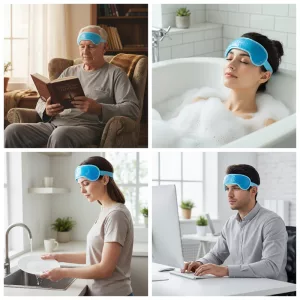 Me gusta que puedo calentarla o enfriarla. Me ayuda a relajarme después del trabajo y la correa ajustable se adapta perfectamente a mi cabeza grande.
