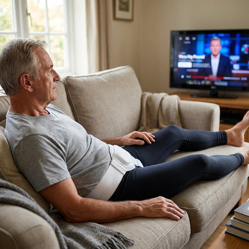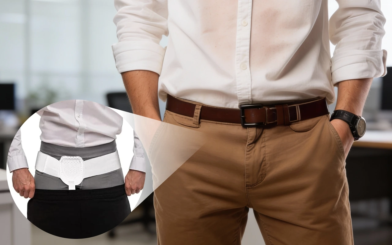 Lleva el cinturón inguinal para hernia Ortorex todo el día sin llamar la atención. Te sentirás confiado porque se ajusta discretamente debajo de la ropa.