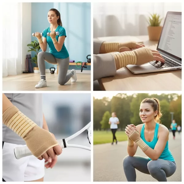 La venda para la muñeca se siente suave y flexible, y mi mano no suda ni siquiera después de usarla todo el día. Me quita el dolor de muñeca casi al instante.