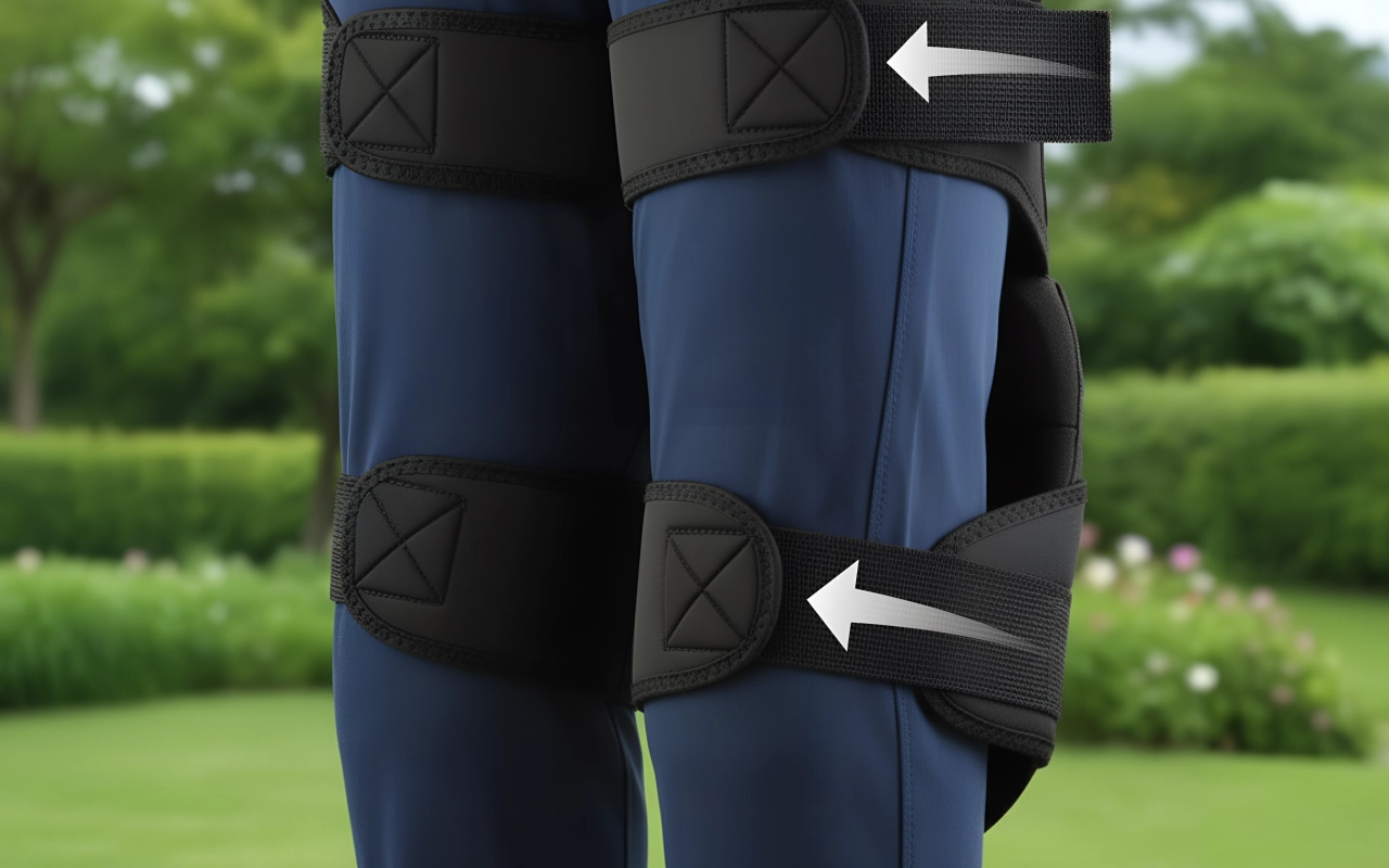 Las correas fáciles se ajustan en segundos para cualquier tamaño de pierna. Las almohadillas permanecen en su lugar, permitiéndote moverte rápidamente sin resbalar.