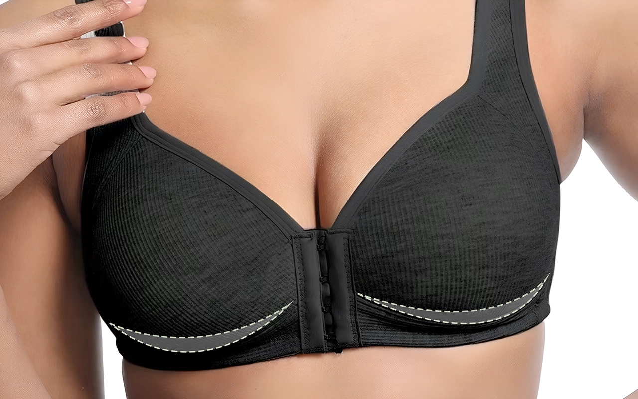 Los broches frontales ahorran tiempo al vestirte cada día. Evitas giros dolorosos o cierres difíciles de alcanzar.