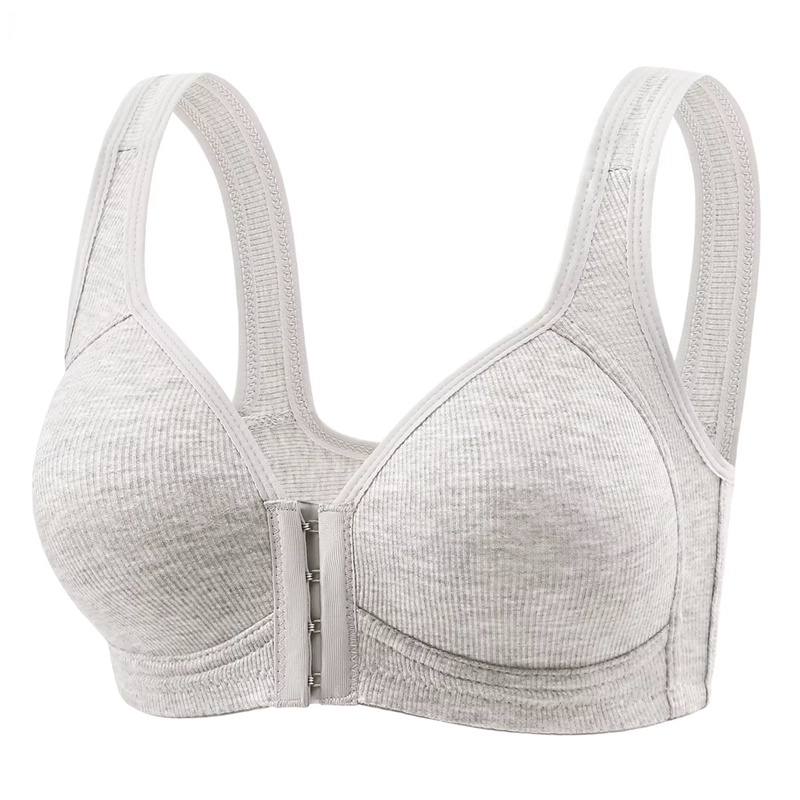 Los broches frontales ahorran tiempo al vestirte cada día. Evitas giros dolorosos o cierres difíciles de alcanzar.