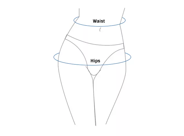 - 1. Envuelve la cinta métrica alrededor de la parte más delgada de tu cintura y la parte más ancha de tus caderas.