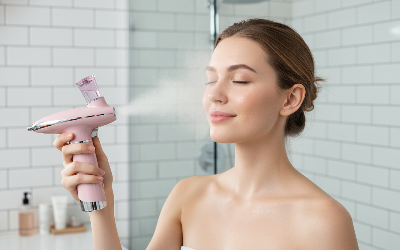 Fácil de usar y deja mi rostro más luminoso. El spray es suave y la terapia de luz hace que mi tono de piel se vea uniforme y claro.