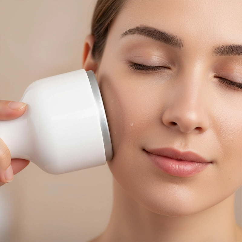 Siente cómo tu piel se tensa suavemente para una apariencia impecable. El metal frío ayuda a que tu rostro luzca más suave, claro y juvenil.