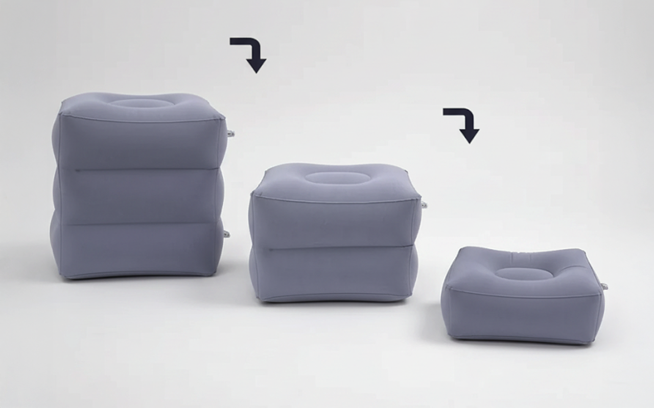 Se pliega hasta quedar pequeño para caber en cualquier bolsa o mochila. Lleva el reposapiés inflable Ortorex a todas partes sin añadir peso.