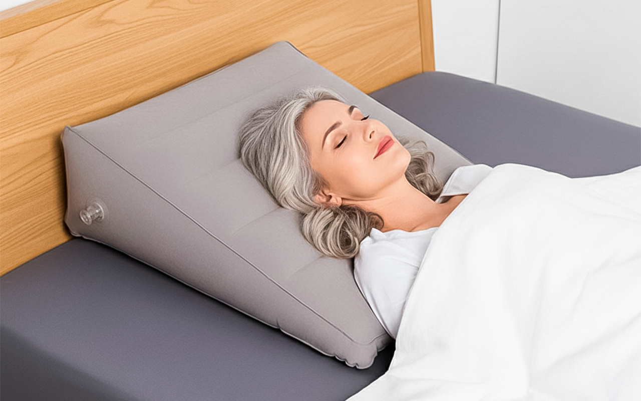 Disfruta de un alivio reconfortante mientras lees, duermes o te relajas en casa. El diseño compacto cabe fácilmente en cualquier bolso para viajar. Infla sin esfuerzo cuando lo necesites, luego desinfla y guarda rápidamente. La almohada de cuña Ortorex te ayuda a sentirte cómodo en todas partes.
