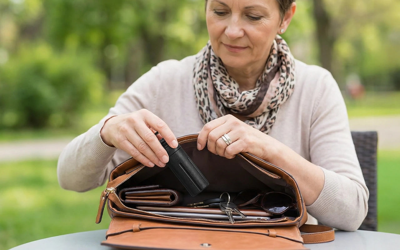 Lo engancho en el cinturón para el trabajo. Me ahorra el estrés de olvidar mis medicamentos y ya no tengo que buscar en mi bolso.
