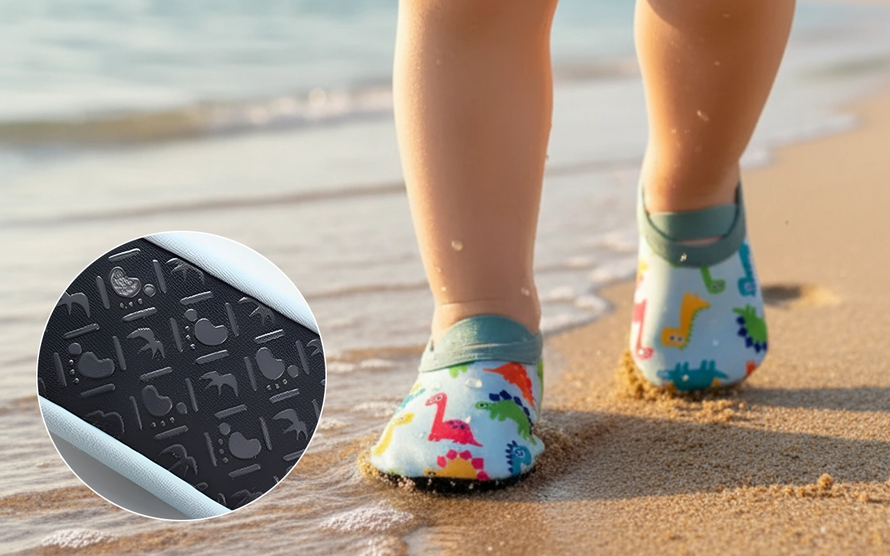 Nuestros zapatos se adhieren firmemente a superficies mojadas, ayudando a los niños a mantenerse estables.