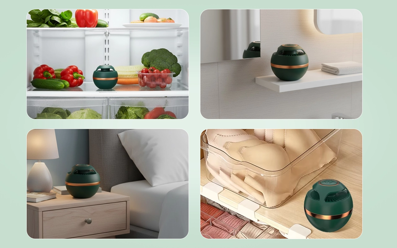 El Purificador de Aire de Cocina Ortorex se ajusta perfectamente a cualquier lugar donde necesites frescura. Úsalo en armarios, coches, baños o incluso espacios para mascotas.