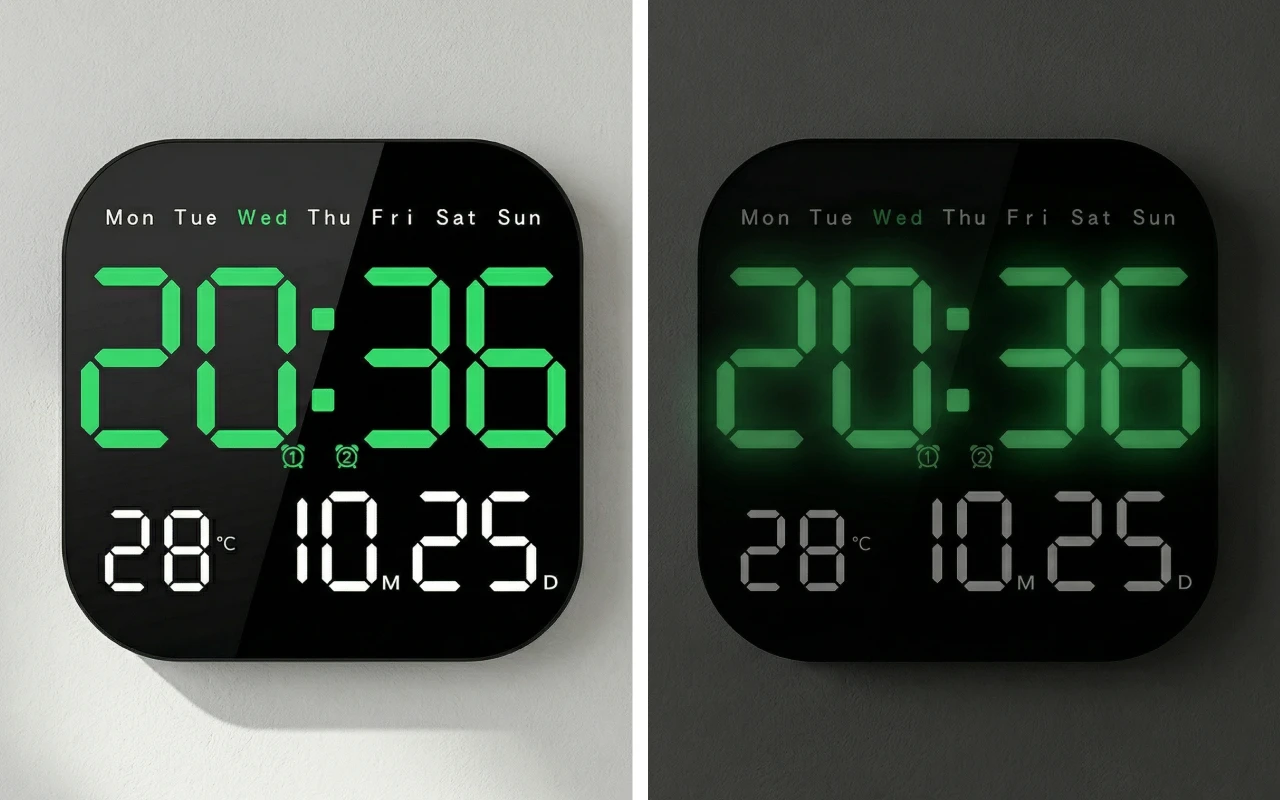 Trabajo de noche y duermo durante el día, y poder bajar el brillo y aun así tener un reloj claro en la pared es realmente útil.