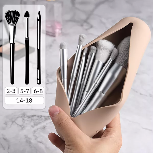 La bolsa guarda todo mi set de brochas. Es fácil de limpiar y la llevo a todas partes. Sin olores raros, solo silicona suave.