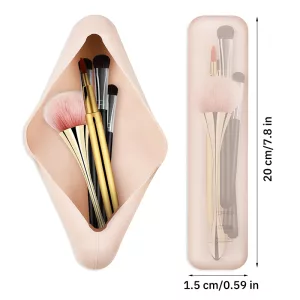 Viajo mucho y esta bolsa me salva siempre. No más brochas dobladas o enganchadas. La silicona se siente muy bien y suave.