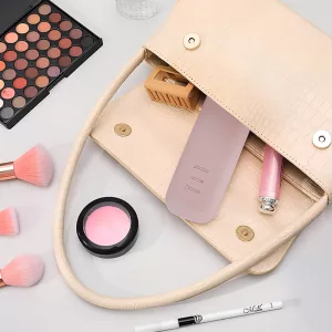 La bolsa de maquillaje Ortorex mantiene todas las herramientas ordenadas y limpias. Su estructura ligera facilita llevarla al viajar. Limpiarla toma segundos con solo una pasada o enjuague.