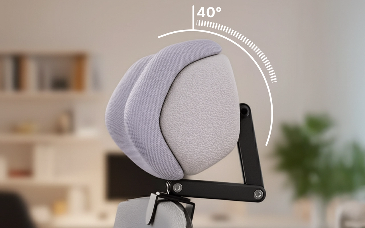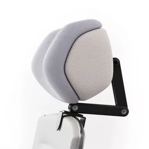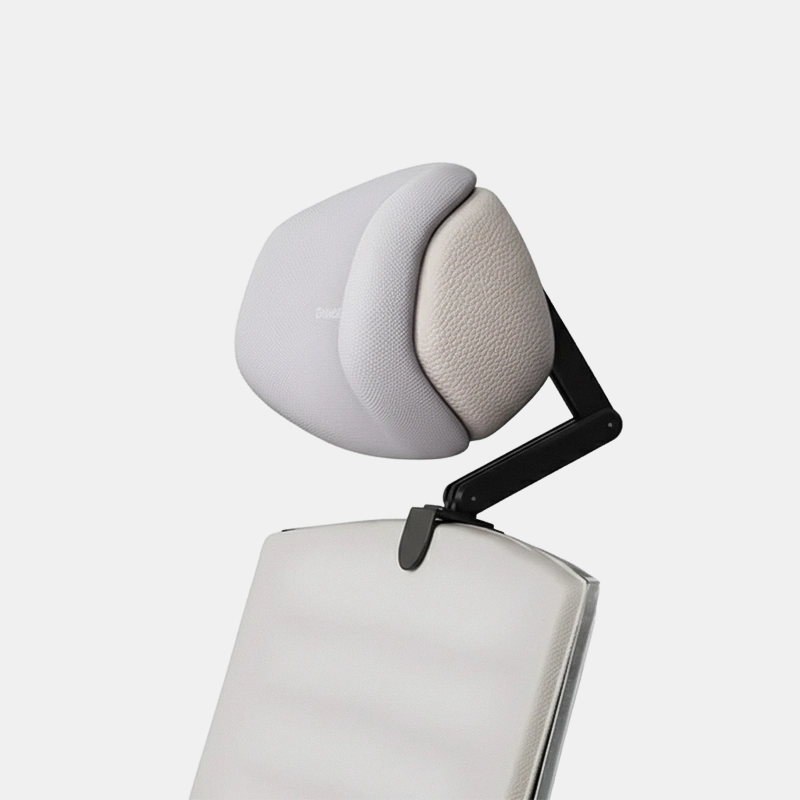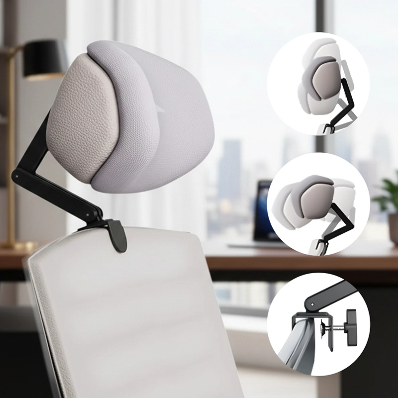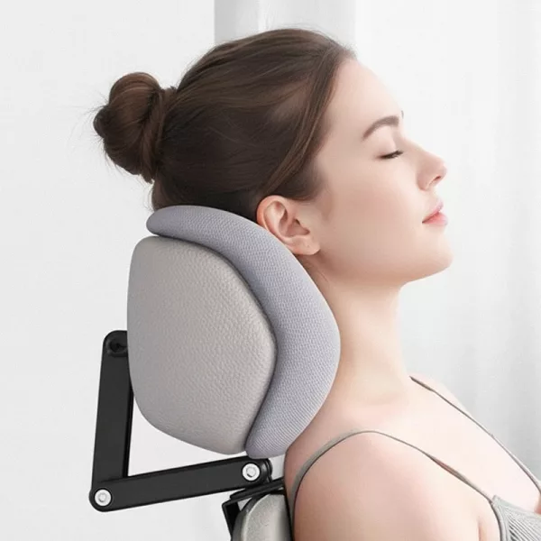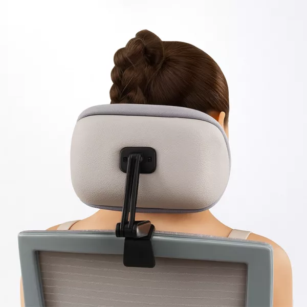 Reduce la tensión en los hombros sosteniendo suavemente tu cabeza. Este apoyo alivia la presión y previene molestias causadas por una mala postura al sentarse.