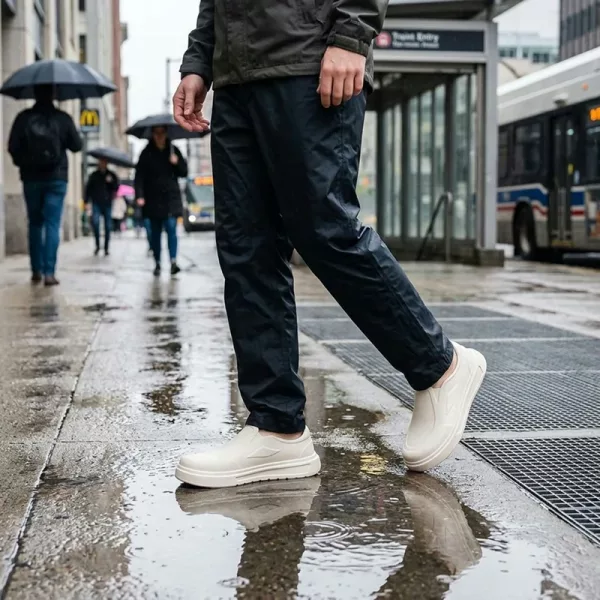 Zapatos cómodos para diario, funcionan bien bajo la lluvia y se ven simples y limpios.