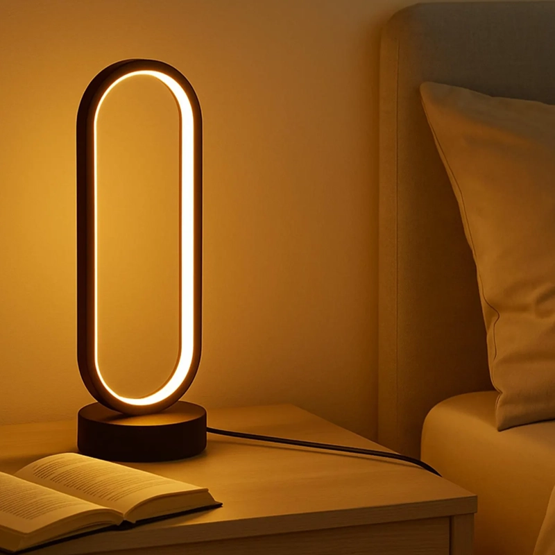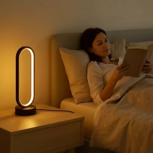 Lleva calma a tu espacio con la lámpara de mesa Ortorex. Su forma ovalada única luce elegante y ahorra espacio fácilmente. La luz suave reduce la fatiga visual al leer o relajarse por la noche.