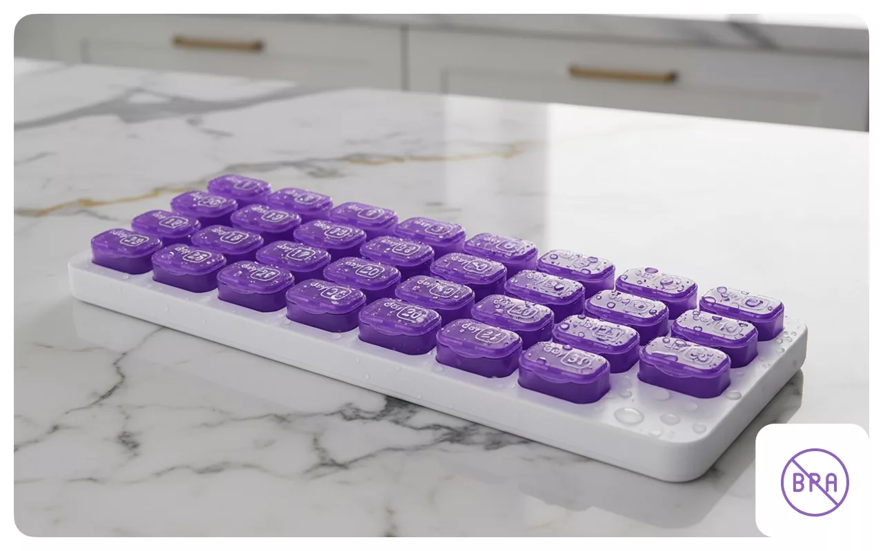 Las cápsulas selladas evitan derrames y mantienen las tabletas frescas a diario. El material libre de BPA protege la salud mientras resiste grietas o daños.