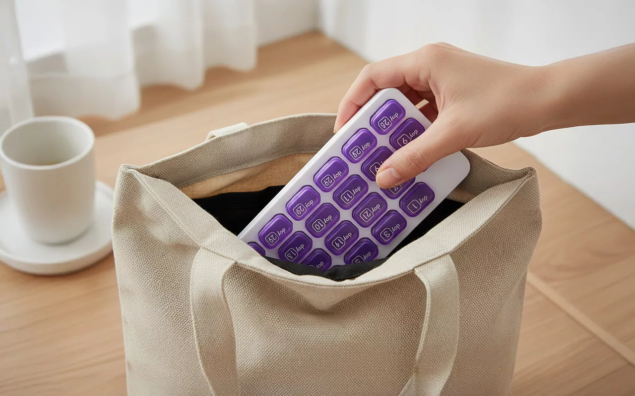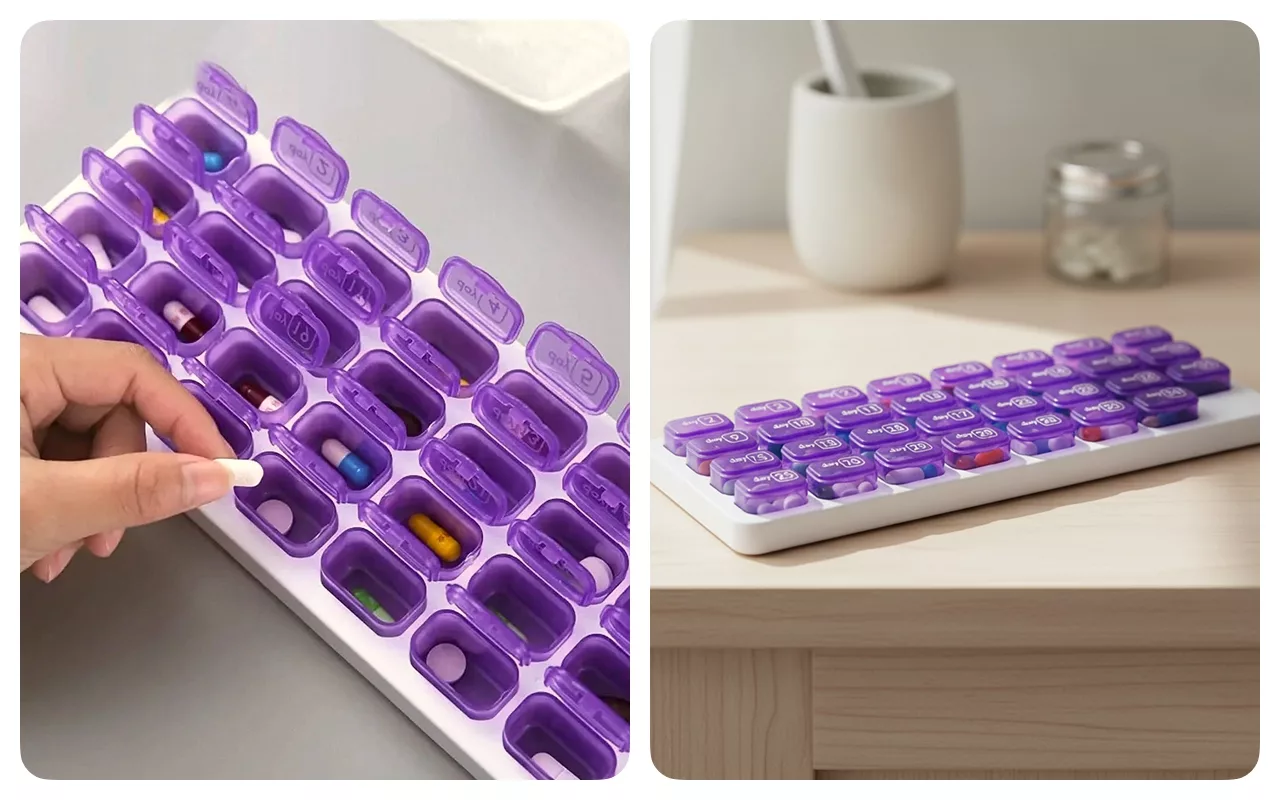 Usar este organizador significa que nunca olvido mi pastilla de la mañana. Las tapas transparentes me ayudan a revisar sin tener que sacar todo.