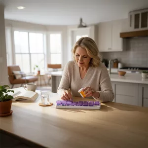 Usar este organizador significa que nunca olvido mi pastilla de la mañana. Las tapas transparentes me ayudan a revisar sin tener que sacar todo.