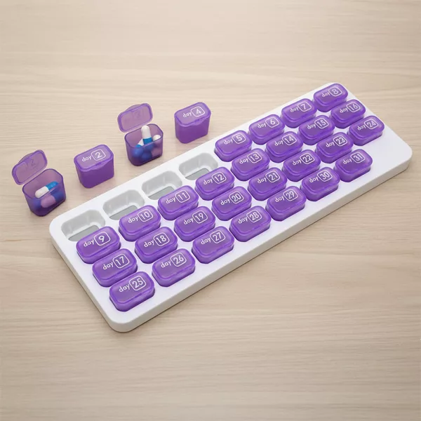 Toma el control de las dosis diarias usando cápsulas numeradas simples. Ortorex facilita almacenar vitaminas y medicinas para todos. Planea con anticipación para treinta y un días sin confusión ni estrés. Cada cápsula mantiene todo visible, seguro y protegido durante el mes.