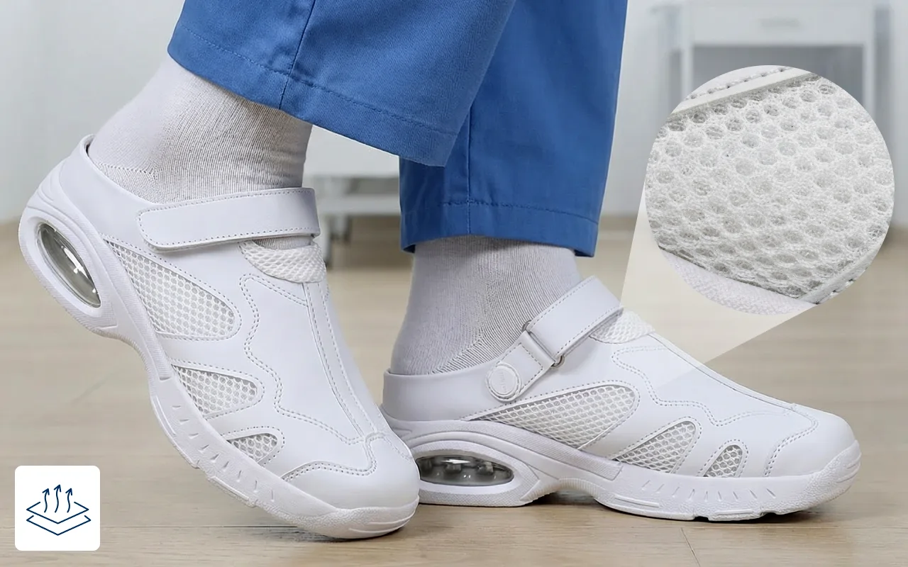 Son tan transpirables que mis calcetines no terminan empapados después del turno. Además, son bonitos y quedan bien con mi uniforme.