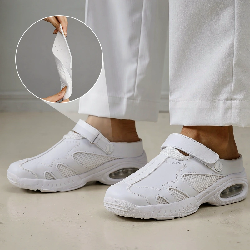 Las suelas antideslizantes aportan estabilidad en superficies mojadas o lisas. La confianza en cada paso reduce el riesgo de resbalones y lesiones.