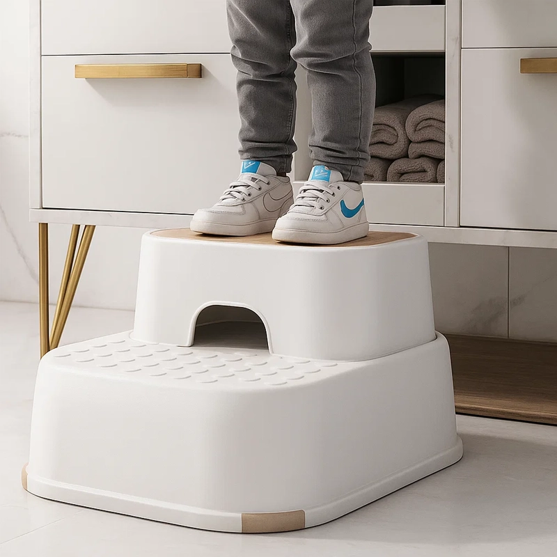 ¡Me encanta el tamaño! Mi hijo puede alcanzar el lavabo o el inodoro del baño con seguridad. Lo mejor es la base antideslizante, nunca me preocupo por caídas.