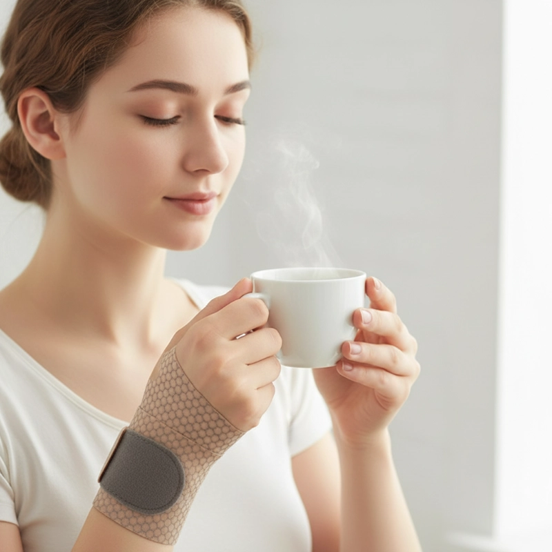 Usar esta muñequera mientras escribo todo el día realmente ayudó. Ya no siento dolor y permanece cómoda incluso después de horas.