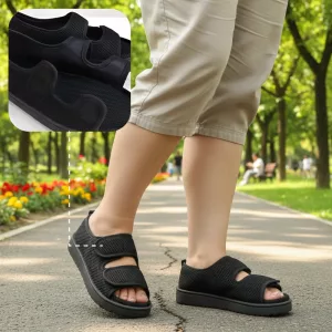 Estos zapatos para diabéticos ayudaron muchísimo con mis dedos hinchados. La parte delantera abierta evita el roce, y la correa de velcro hace que sea muy sencillo ajustarlos durante el día.
