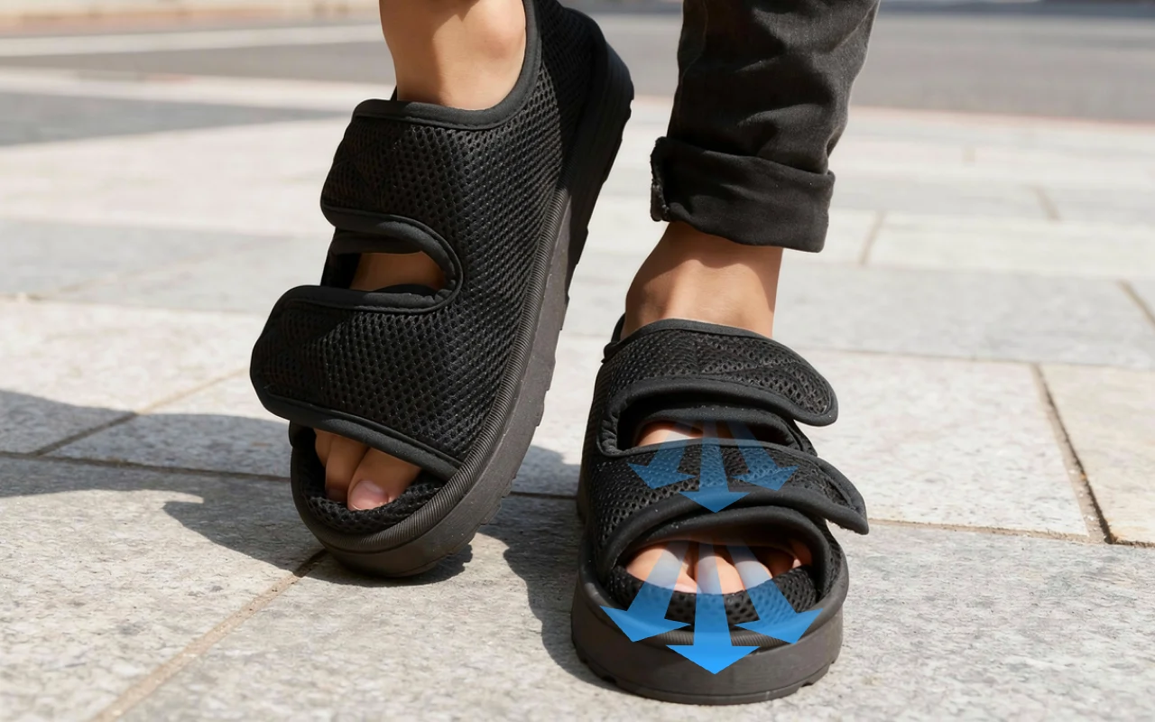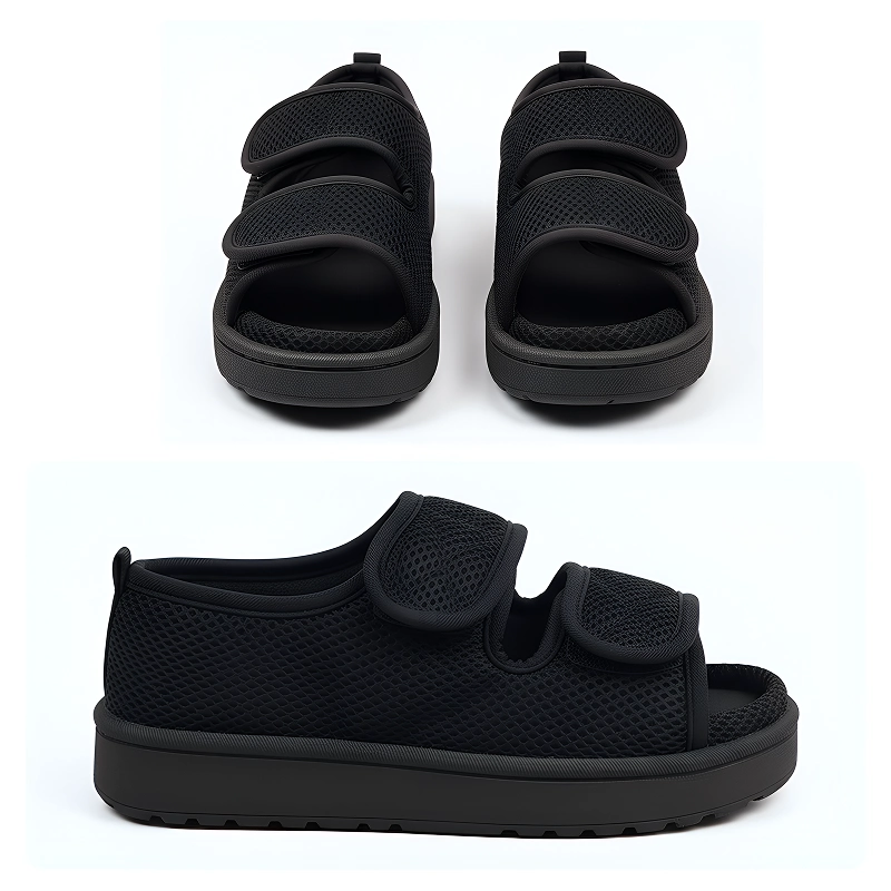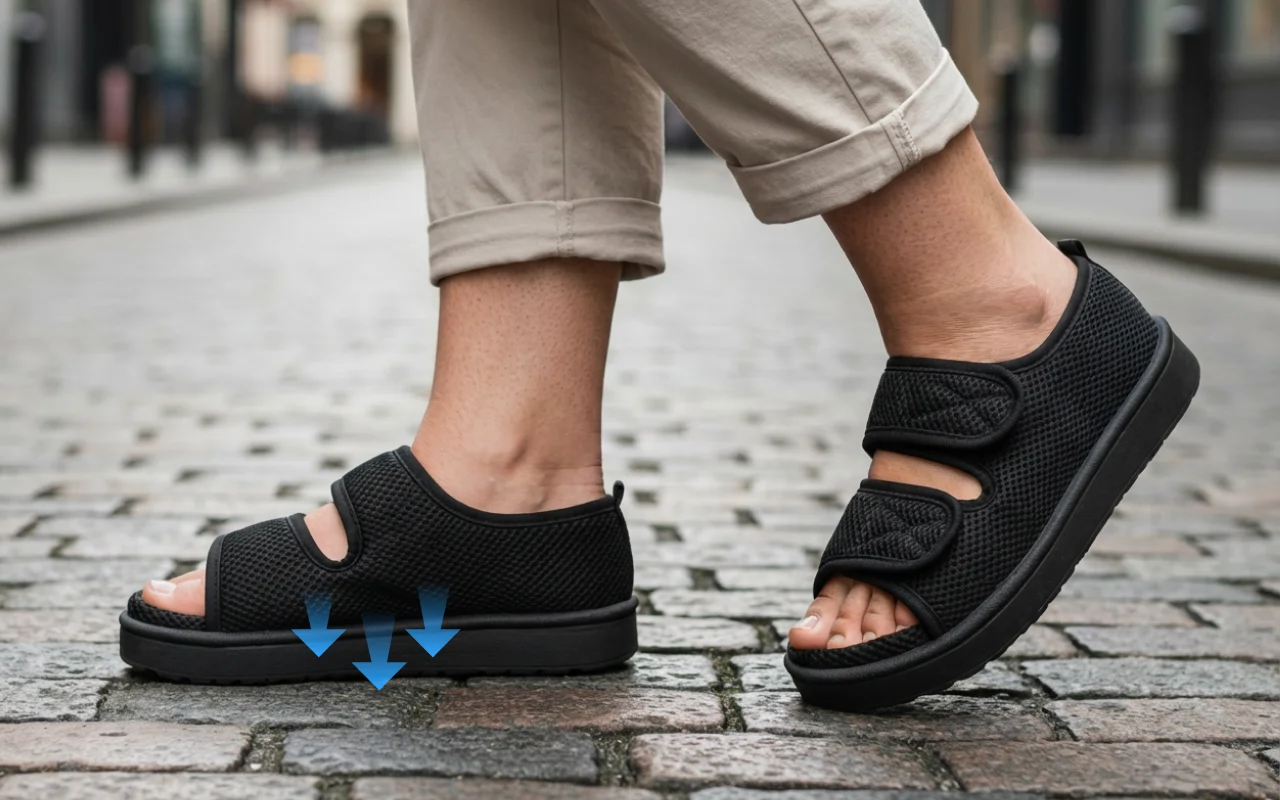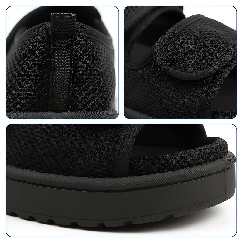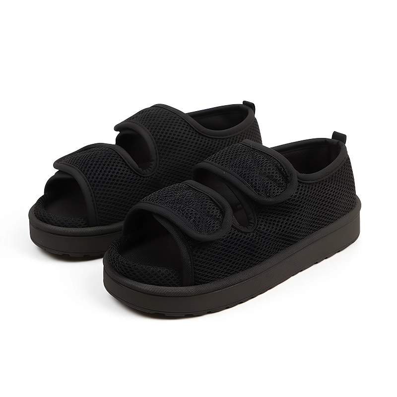 Estos zapatos para diabéticos ayudaron muchísimo con mis dedos hinchados. La parte delantera abierta evita el roce, y la correa de velcro hace que sea muy sencillo ajustarlos durante el día.