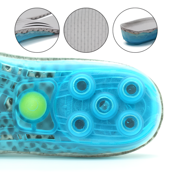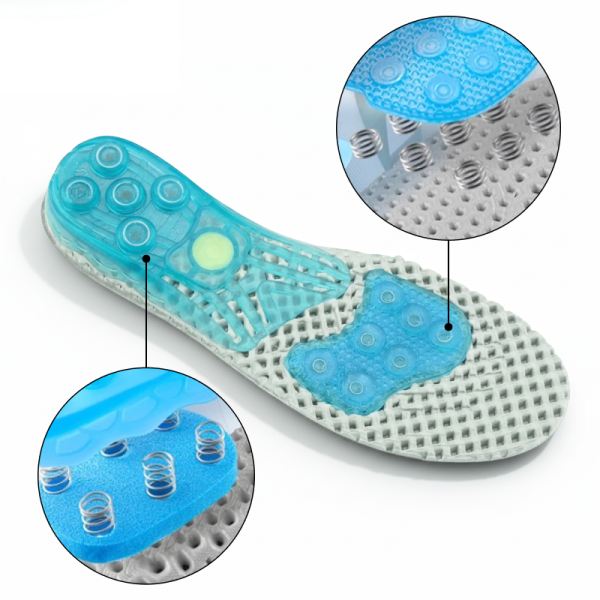 La tecnología de resorte única absorbe los impactos y reduce la tensión muscular. El alivio se siente rápido, ayudando a que talones y arcos doloridos se recuperen rápidamente.