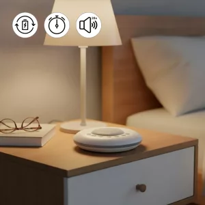 Configura temporizadores o reproduce sonidos toda la noche sin complicaciones. La función de memoria mantiene tus ajustes favoritos listos en todo momento.
