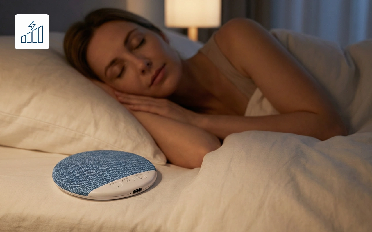 Bloquea las distracciones rápidamente con opciones de océano, arroyo y canto de pájaros. Sonidos auténticos crean calma, ayudando a tu mente a relajarse para dormir.