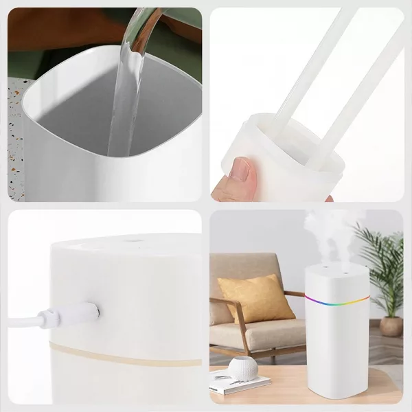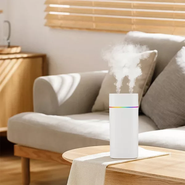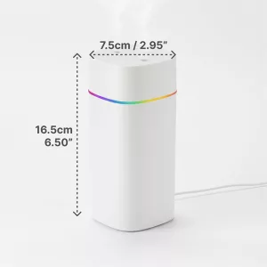 Coloqué este pequeño dispositivo en mi escritorio de trabajo y evita que mi piel se reseque mientras trabajo todo el día. Los colores hacen que mi espacio se vea acogedor.