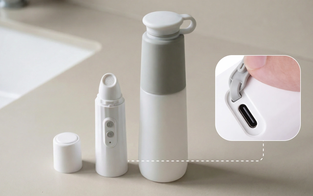 Este pequeño bidé me ayuda a mantenerme fresca después del gimnasio. Súper pequeño, nadie siquiera lo nota en mi bolsa. La limpieza es suave pero efectiva.