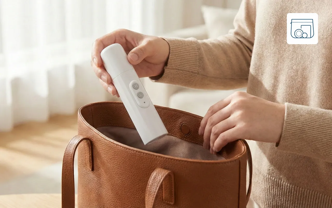 Delgado y compacto, cabe fácilmente en cualquier bolso o mochila. No necesitas preocuparte por aparatos voluminosos o espacio extra.