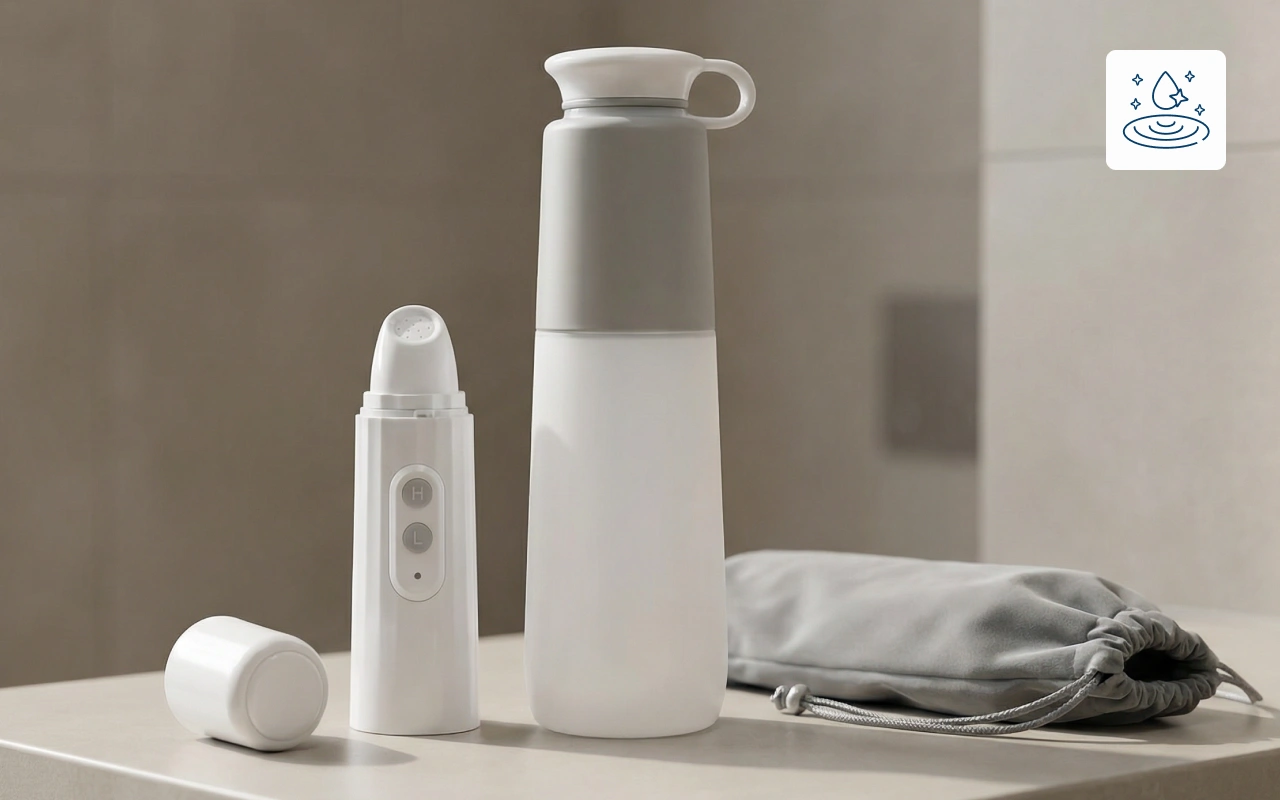 Viajar o estar fuera de casa puede dificultar la higiene. El bidé portátil Ortorex hace que la limpieza suave sea rápida y fácil. Ligero y discreto, cabe perfectamente en tu bolso. Disfruta de comodidad y confianza cada día, donde sea que la vida te lleve.