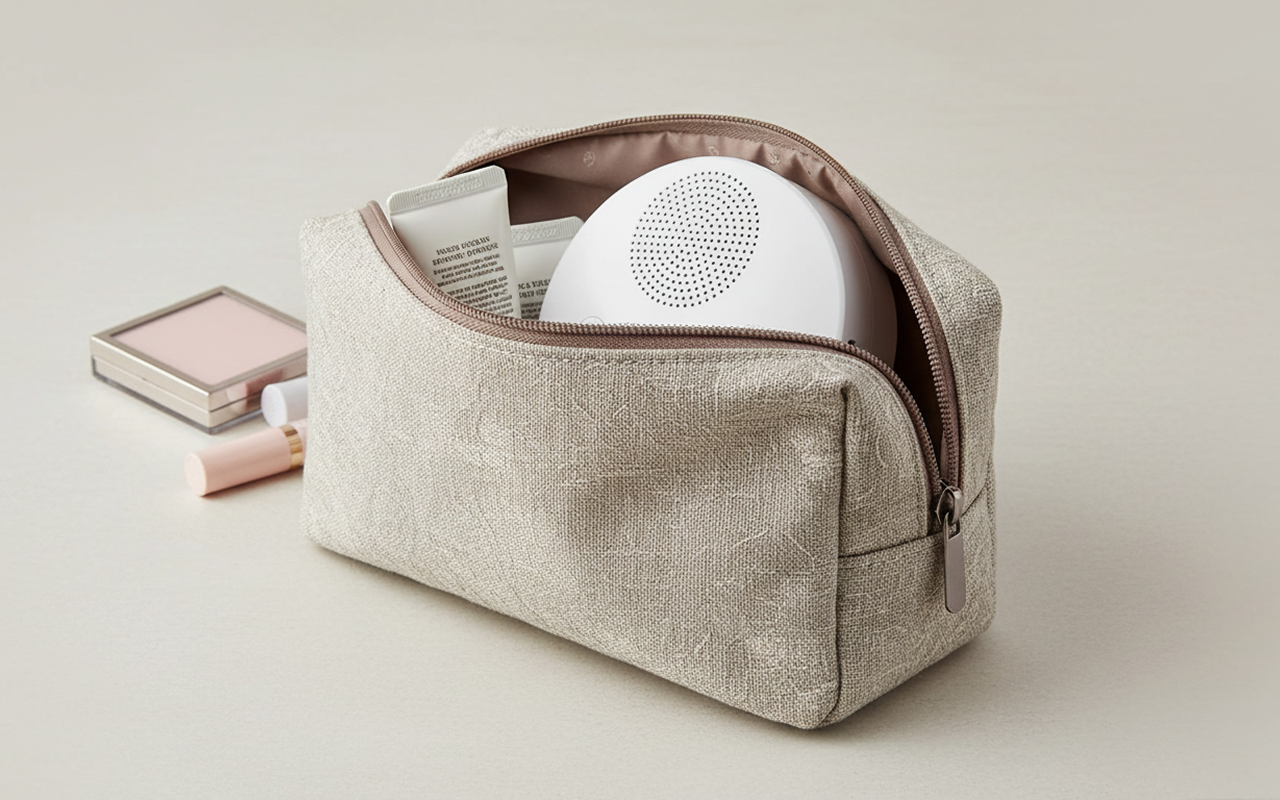 El diseño ligero significa que llevas la calma a donde vayas. Cabe en una mano así que puedes dormir fácilmente fuera de casa.