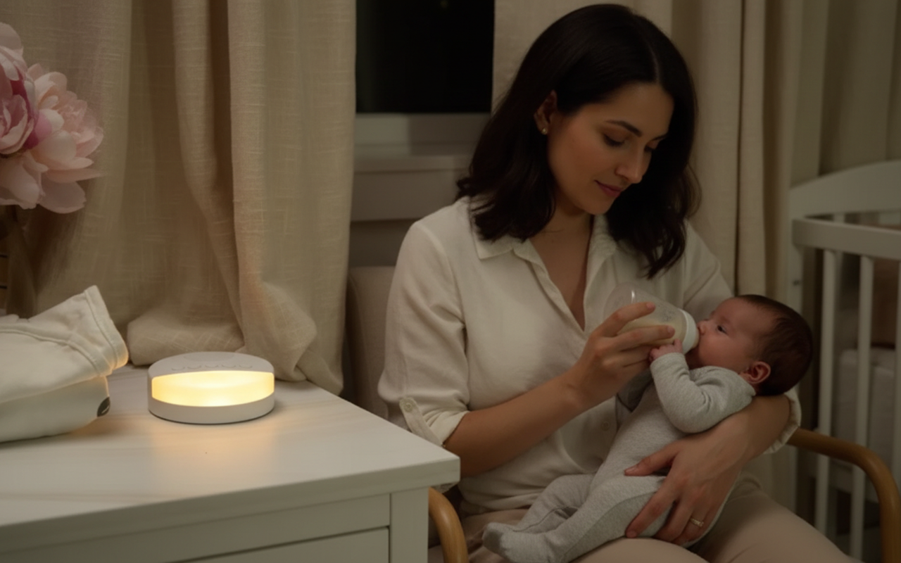 Desde que tenemos esta máquina de ruido, mi bebé se duerme enseguida. La luz nocturna ayuda mucho durante las tomas de la noche. ¡Muy recomendable para familias!