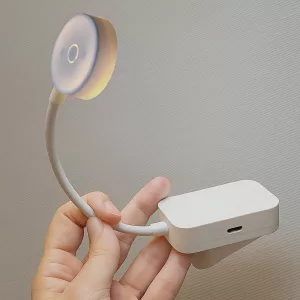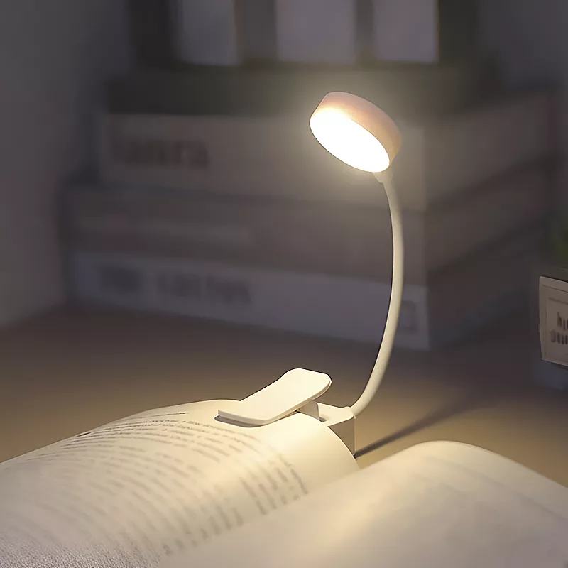Esta pequeña lámpara se sujeta perfectamente a mi libro y no se mueve. Me encanta la luz suave y lo fácil que es para mis ojos por la noche.
