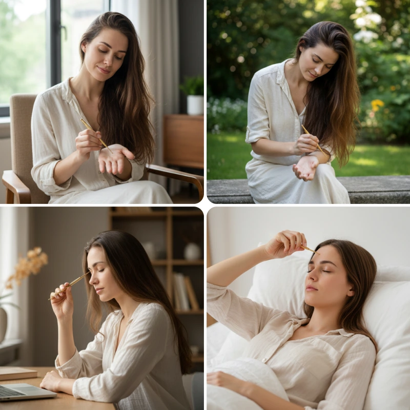 Lo llevo en mi bolso de trabajo y lo uso entre reuniones en las sienes y la mandíbula. Reduce notablemente los dolores de cabeza por tensión y me ayuda a concentrarme de nuevo.