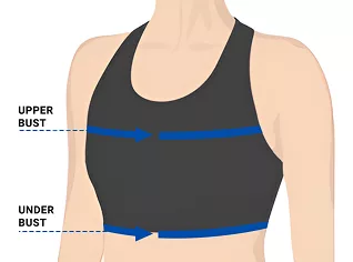 - 3. Para medir la parte superior del busto, envuelve la cinta métrica alrededor del torso, justo debajo de las axilas y por encima del busto.