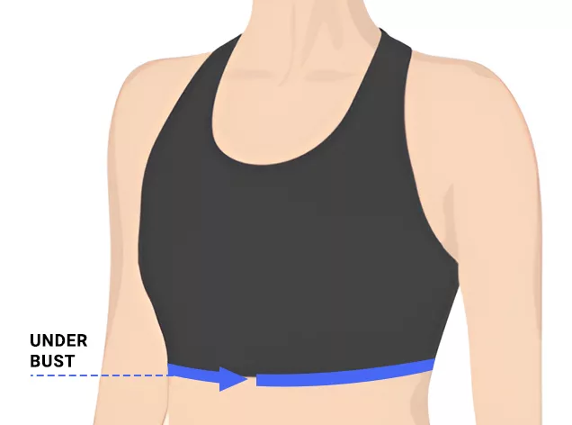 - 2. Para encontrar la medida debajo del busto, rodea tu caja torácica con la cinta métrica, directamente y de manera uniforme bajo tu busto.