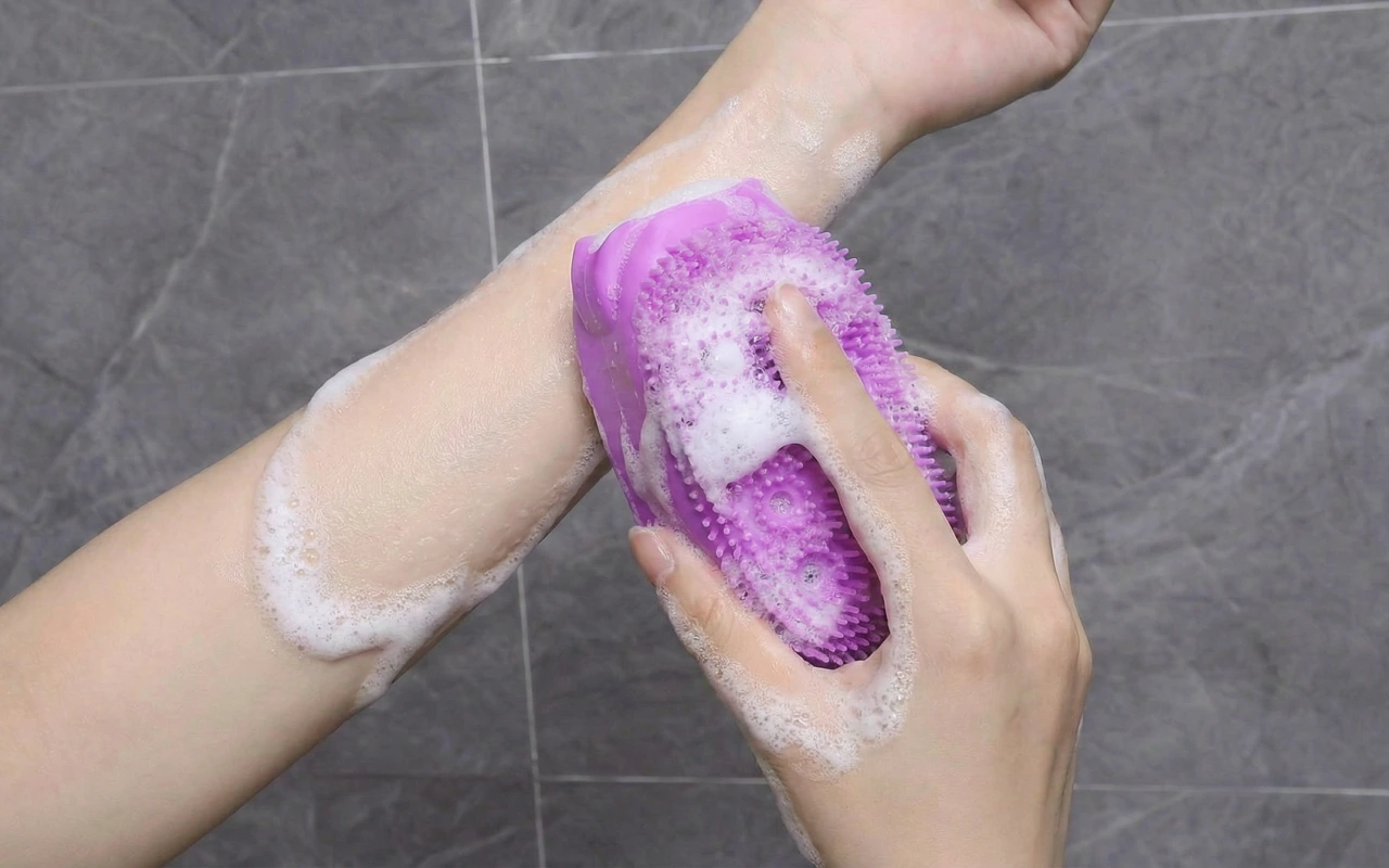 Ahora bañarme es rápido y divertido. Las cerdas se sienten suaves pero eliminan las zonas ásperas. He notado mi piel más brillante desde que lo uso.
