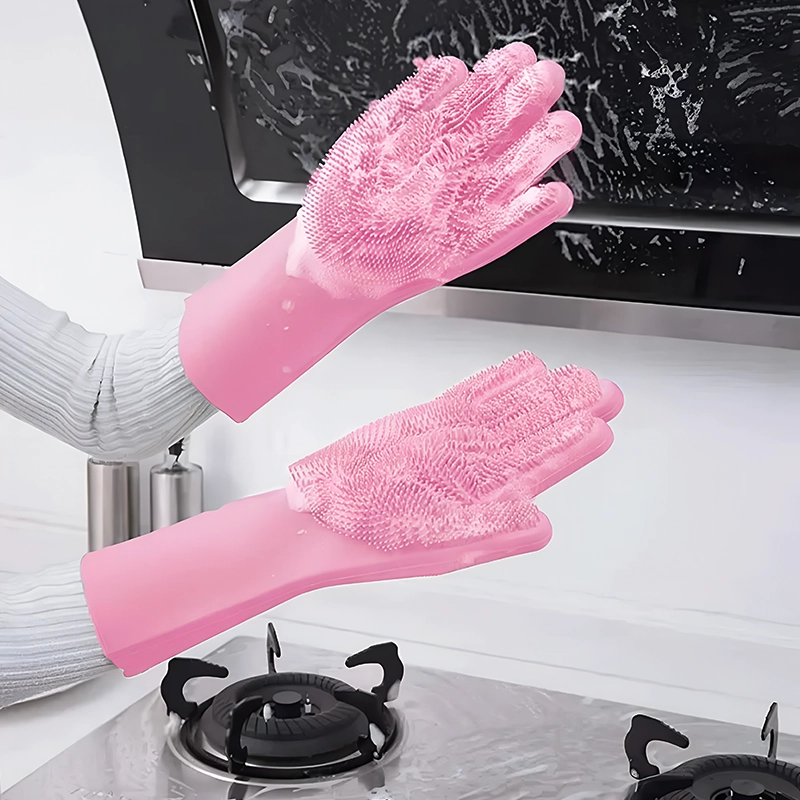 Estos guantes con cerdas eliminan la necesidad de cepillos o esponjas por separado, ahorrándote tiempo y esfuerzo. Eliminan residuos de comida, espuma de jabón y suciedad en segundos.