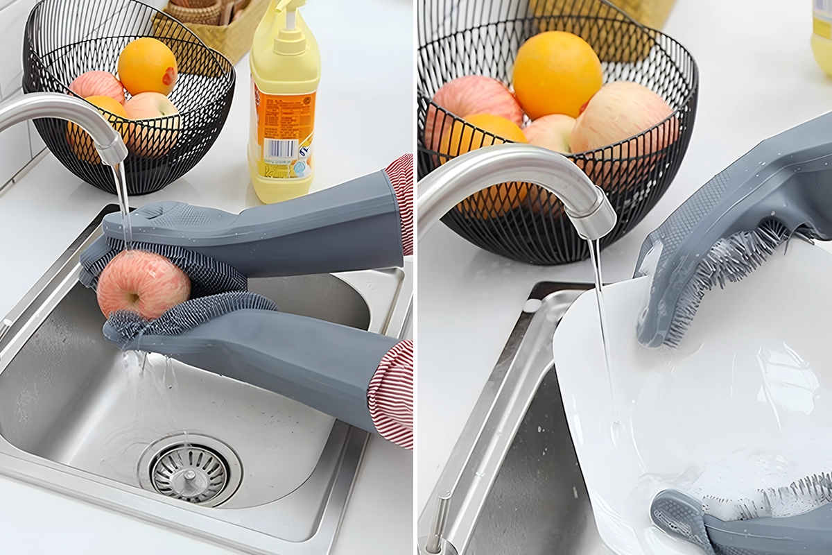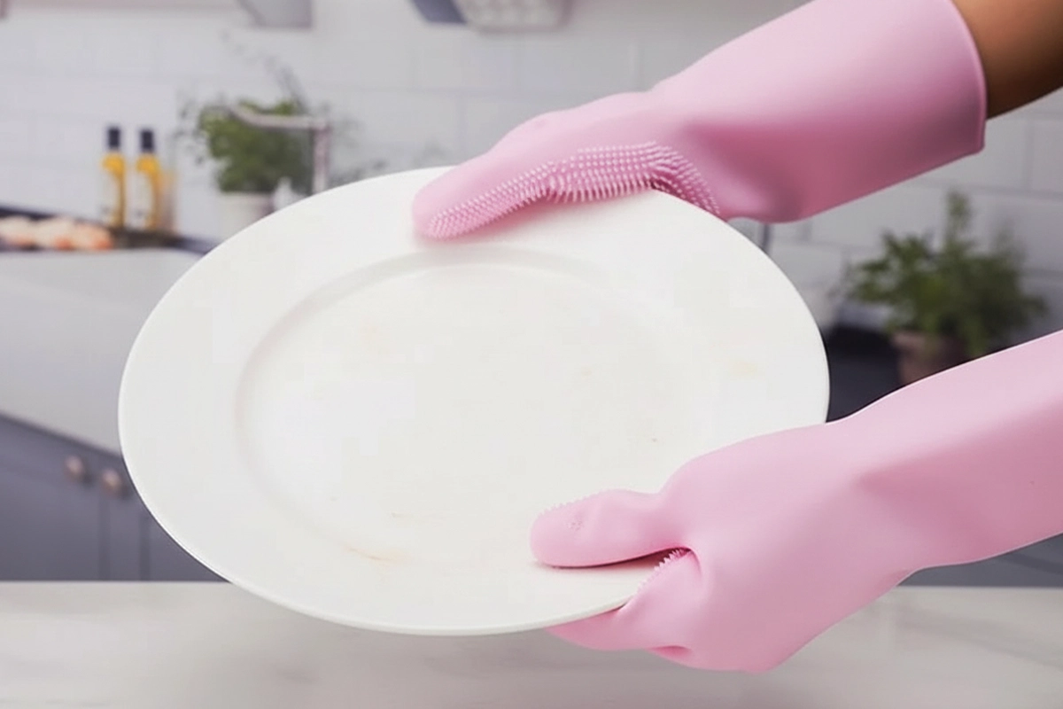 ¡Estos guantes para fregar hacen que lavar los platos sea mucho más rápido! Las cerdas realmente limpian bien y no rayan mis platos.