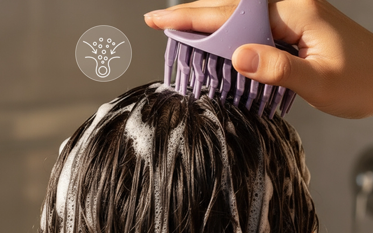 Las cerdas suaves alivian la tensión sin rascar las zonas delicadas. Cada lavado se convierte en una experiencia relajante y calmante para tu cabeza.