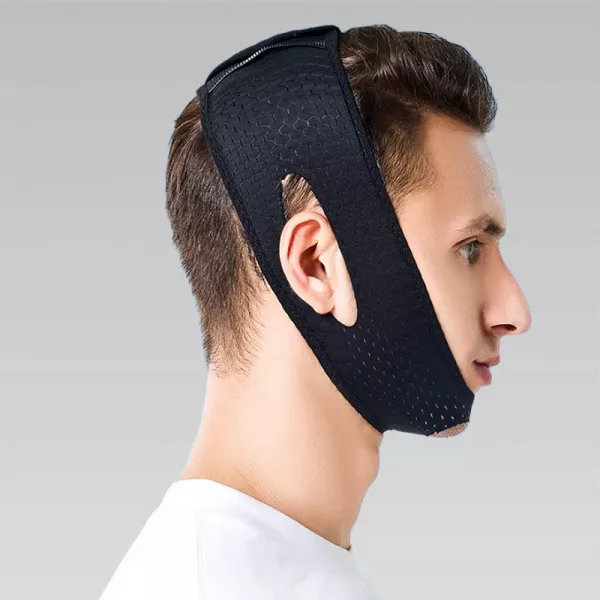 La tela elástica es muy buena y no deja marcas. La uso mientras hago la tarea y mi mandíbula ahora se ve mucho más definida.