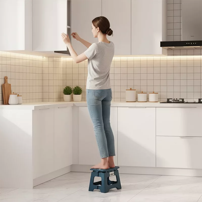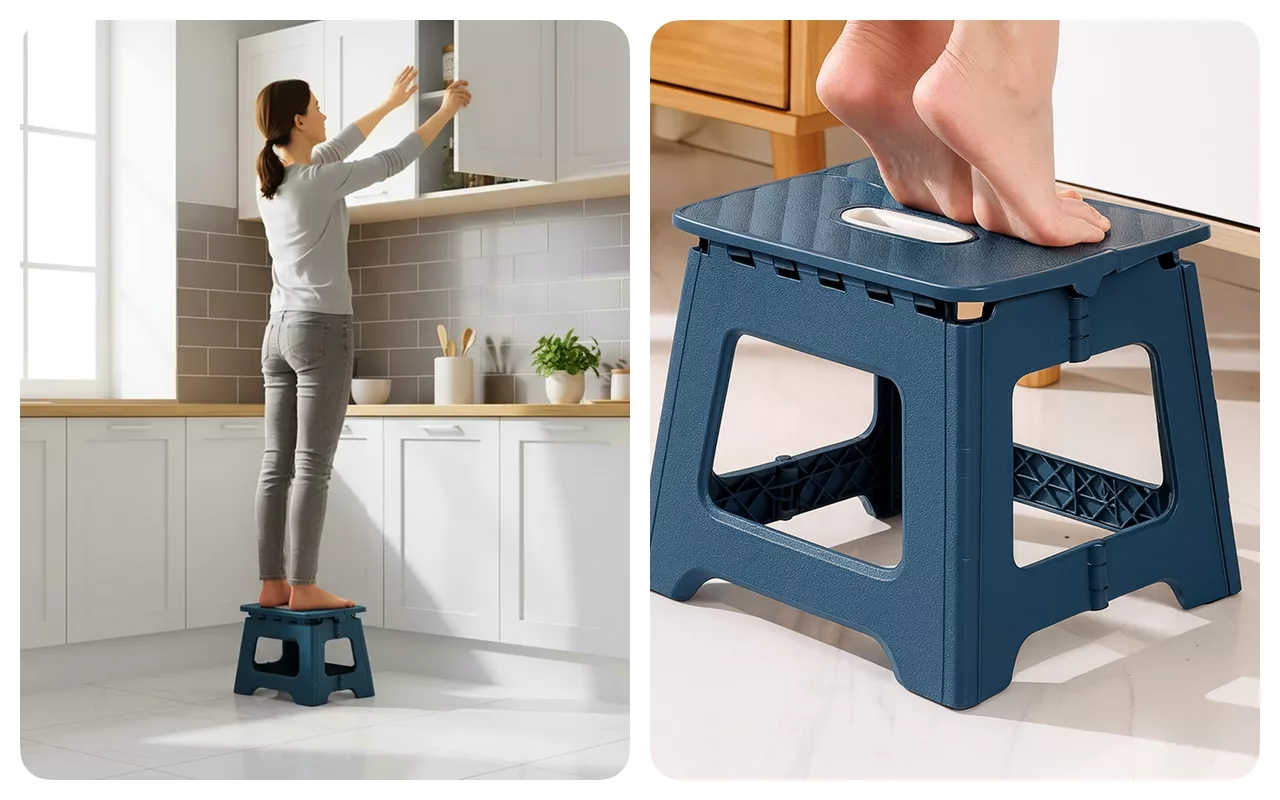 No soy alta, así que este taburete plegable es salvavidas para guardar las compras. Es liviano pero realmente resistente.
